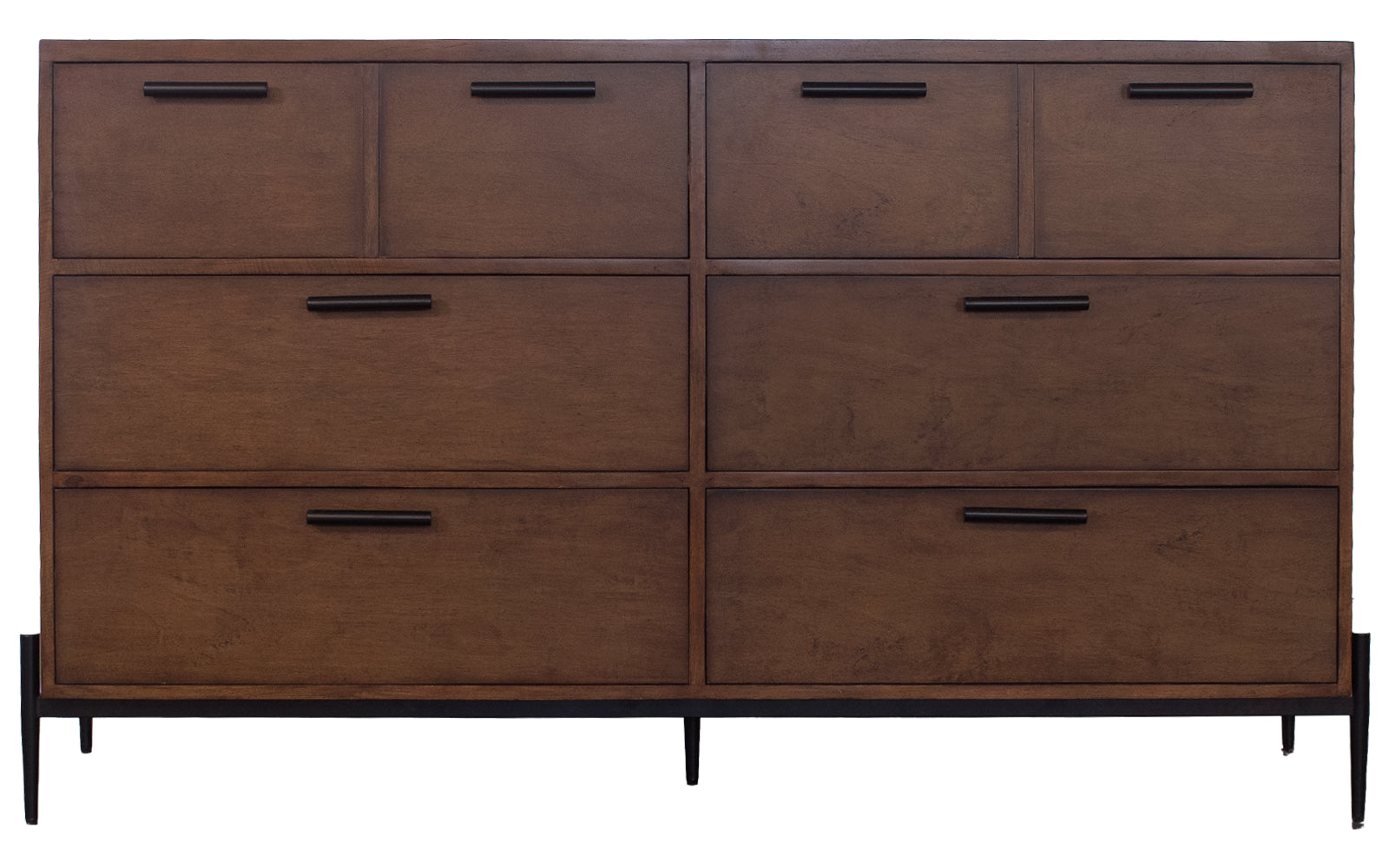 The Noble Pacifica Dresser brings warmth and character to any bedroom. Built from solid Mango Wood with a rich Tobacco Leaf finish, this six-drawer piece combines rustic industrial appeal with everyday functionality. Spacious drawers provide ample storage for clothing and essentials, while the sturdy construction ensures lasting quality. Its distinctive grain patterns and natural wood tones make it a striking focal point that complements both modern and traditional décor. A versatile addition that works as hard as it looks.