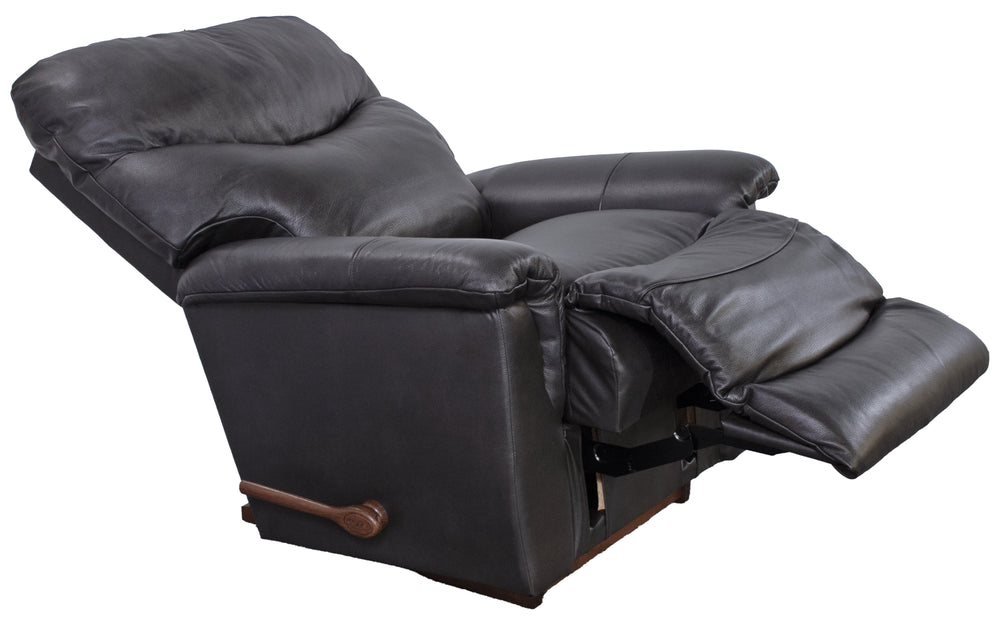 An updated silhouette, complete with slightly flared arms and a sleek tall back give Trouper a look that’s fresh and contemporary. It’s also one comfortable recliner. The sculpted bucket seat cradles you in softness while the padded split back provides superb head and lumbar support. Simply use the convenient handle on the outside arm to raise the legrest for reading, relaxing or watching TV. When you’re not reclining, it’s a relaxing rocker with a smooth, graceful motion.