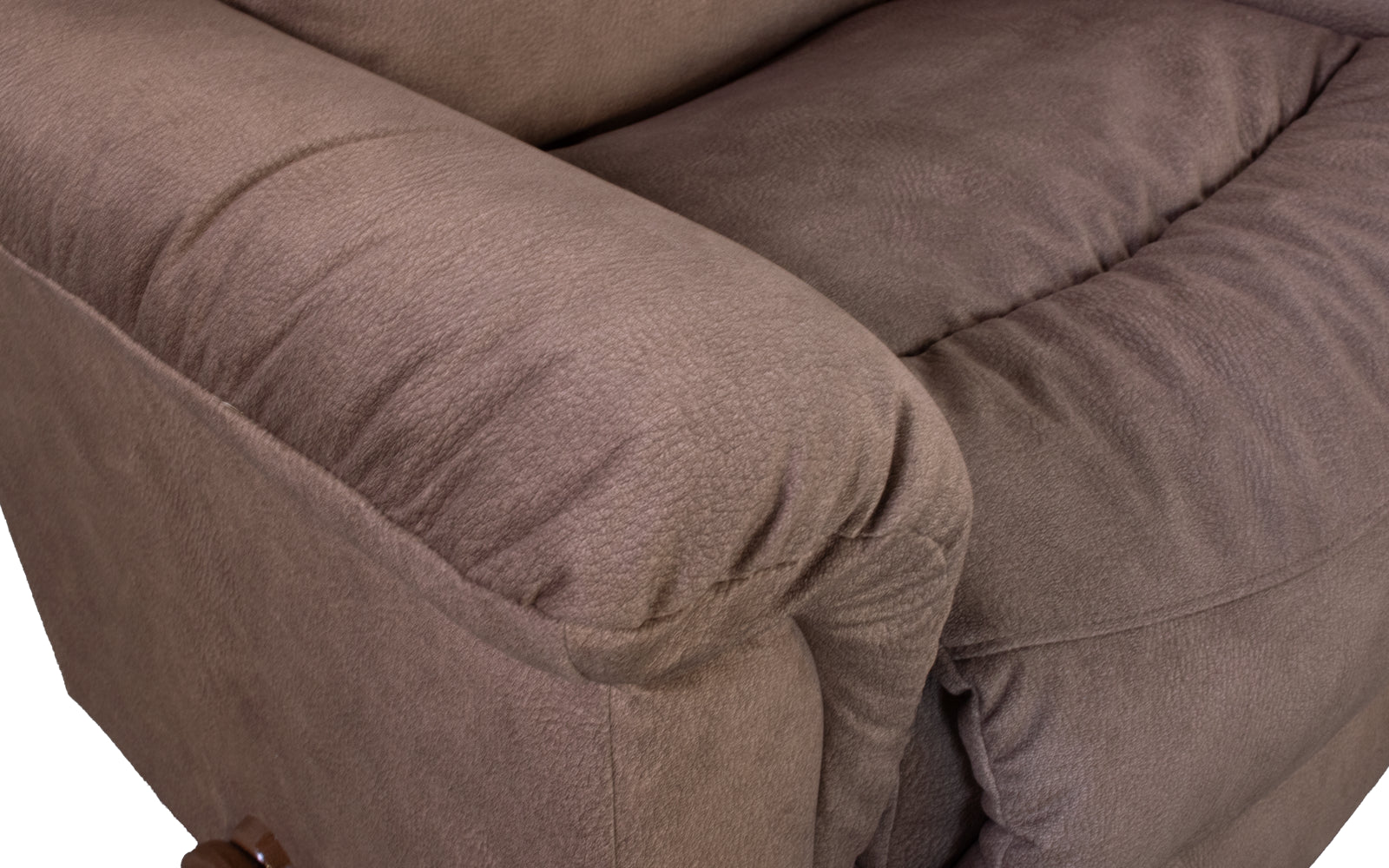 Our Collage Rocking Recliner is a family favorite that's easy to love. Its petite scale and updated style allow it to blend into just about any room. Collage features a bullnose (rounded edge) seat, padded flared arms and a decorative pull in the back cushion. Simply use the convenient handle on the outside arm to raise the legrest for reading, relaxing or watching TV.