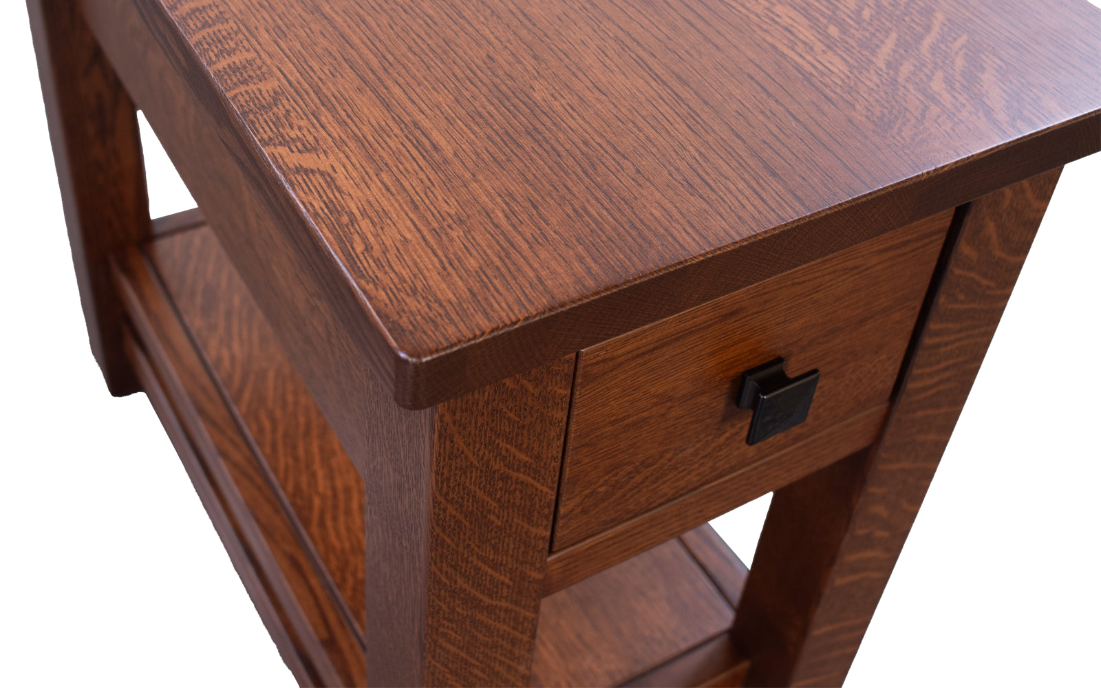 Handcrafted by skilled Amish artisans, this mission-style end table showcases the natural beauty of quartersawn white oak. Each piece is built to order, allowing you to select your preferred wood species and stain color to perfectly complement your home's décor. The sturdy construction and timeless design ensure this table will be a cherished centerpiece for years to come. A true investment in quality craftsmanship and lasting style.