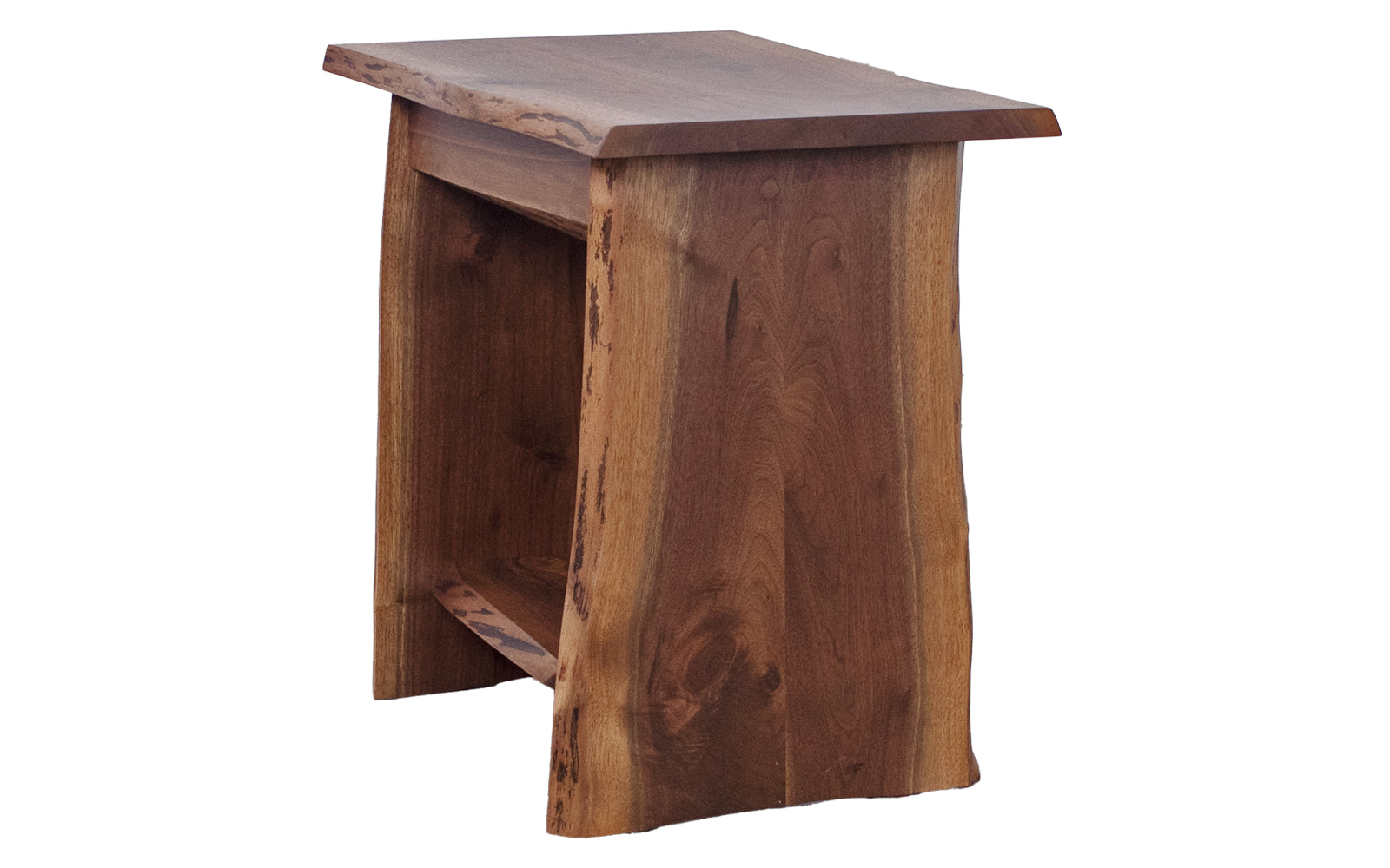 Handcrafted from solid hardwood by skilled American artisans, this walnut live edge end table brings natural beauty and durability to any room. The organic edge showcases the wood's authentic character while the sturdy construction ensures lasting quality. Personalize your piece by selecting from alternative wood species and stain finishes to match your décor perfectly. Custom sizing is also available to fit your specific space. A timeless addition that combines craftsmanship with versatility.