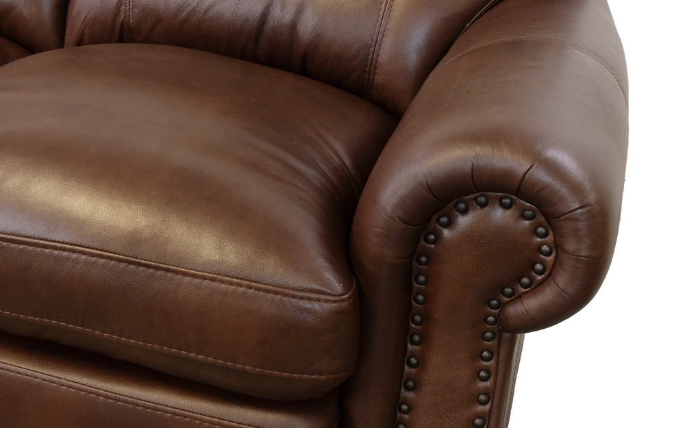 Experience the timeless elegance of our Violino Leather Sofa. Its classic style and handcrafted nailhead detailing add a touch of sophistication to any space. Elevate your decor with this expertly designed piece.
