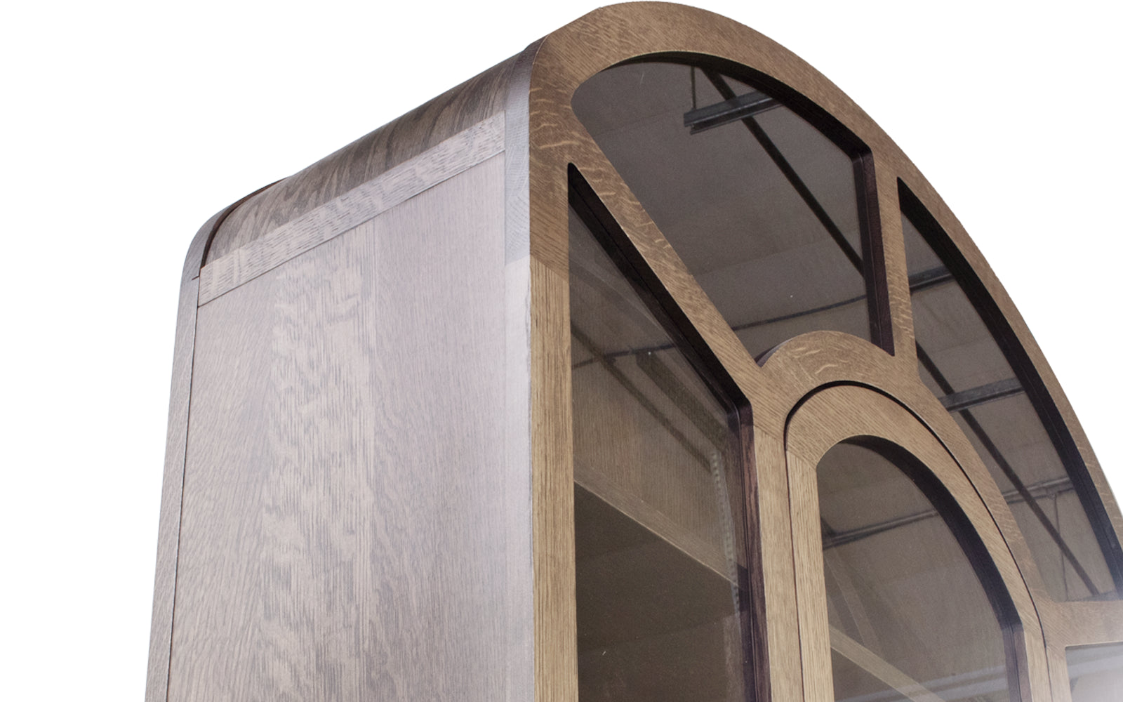 This Amish-made White Oak & Glass Arched Bookshelf is crafted from solid wood with customizable options for wood species, stain color, and hardware to perfectly match your decor. Featuring decorative hinges and a slim center door, it combines classic elegance with practical design. Adjustable shelves offer versatile storage, allowing you to display books and decor exactly how you like.