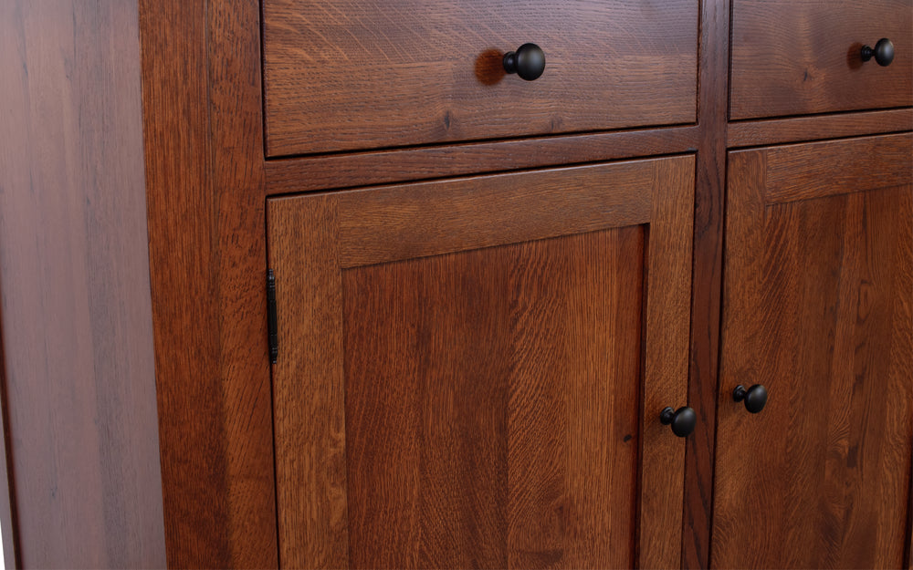Upgrade your dining room with our Rustic Quartersawn White Oak Server. The simple design seamlessly complements any style, while the customization options of wood species, stain color, and hardware make it uniquely yours. Handcrafted by the Amish for a lasting and timeless addition to your home.