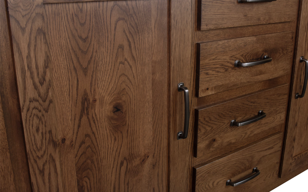 This Flat Sawn Rustic White Oak Server is handcrafted by the Amish. Effortlessly transform your space with this versatile piece - use it as a sofa table, entryway table, dining room server. Customize the wood species, stain color, and hardware to fit your unique style.