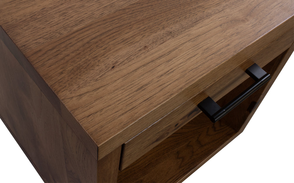 Update your living space with our Rustic Hickory End Table. Its modern design and sharp edges add a contemporary touch to any room. Personalize it with your choice of wood species and stain color for a truly unique piece. Bring both style and functionality to your home with this end table.