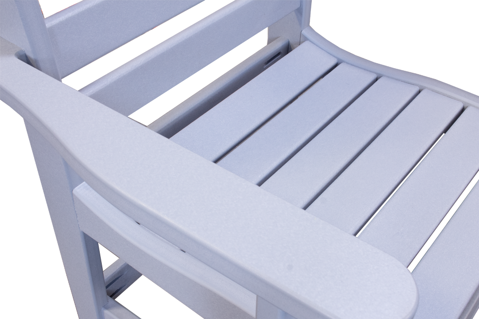 Dine in style with the Outdoor Dining Arm Chair in Stone Gray. Handcrafted in Ohio by Redekers, this chair offers low-maintenance luxury with its durable construction using high-density plastic and marine grade stainless steel hardware. Enjoy worry-free outdoor dining for years to come.