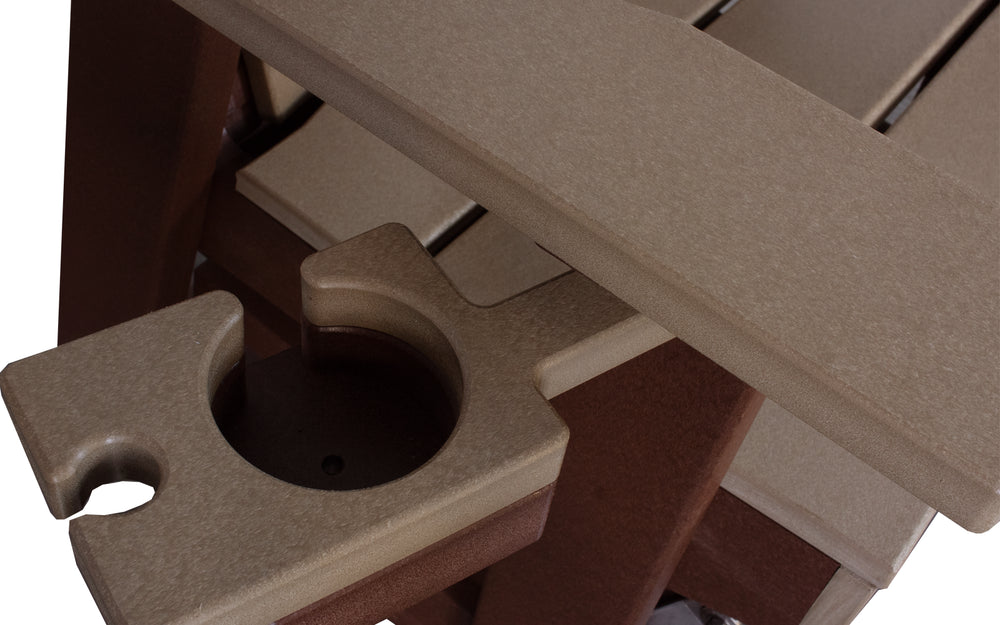 Enhance your outdoor living area with our Amish-crafted Outdoor Swivel Glider in Coffee. Made from durable polywood, this glider resists weather and wear, ensuring lasting comfort and style. Its smooth swivel motion adds relaxation, while the built-in cup and wine glass holder keep your favorite drinks close at hand. Perfect for enjoying peaceful moments outdoors with ease and convenience.