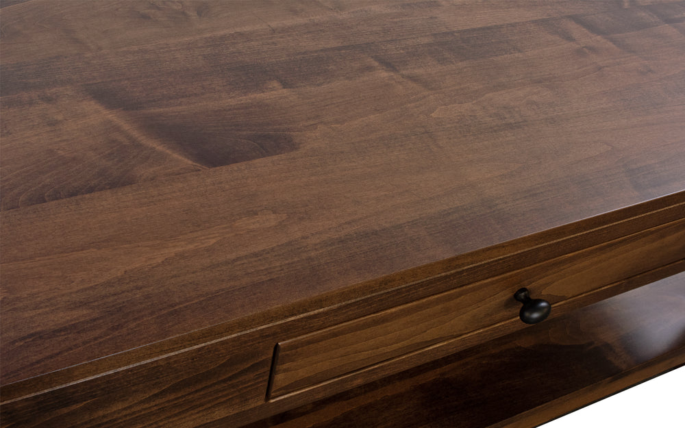 Elevate your living space with this Brown Maple Coffee Table. Handcrafted by Amish artisans, this table is perfect for large spaces. Personalize it with your choice of wood species and stain color for a truly unique piece.
