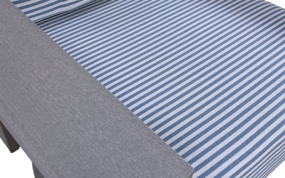 Experience comfort and style with this Outdoor Cushioned Swivel Glider featuring a dainty blue striped cushion and a light grey frame. Amish-made for exceptional craftsmanship, it is constructed from super durable, all-weather polywood, ensuring long-lasting use in any climate. Customize the fabric and frame color to perfectly match your outdoor space, combining personalized elegance with reliable durability.
