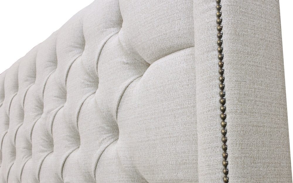 Transform your bedroom with the Decor-Rest Upholstered King Bed. The intricately channeled headboard, upholstered in a beautiful fabric, adds a touch of sophistication. Customize with optional nail head trim and choose from a variety of sizes. Upgrade your sleep experience with this stunning addition.