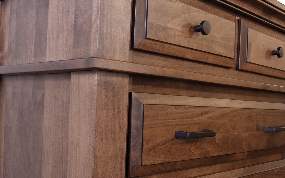 The Brown Maple Chest combines classic design with a commanding presence, handcrafted by skilled Amish artisans. It offers customizable wood species and stain colors, allowing you to personalize it to match your bedroom decor. Built for durability and timeless appeal, this chest brings both beauty and lasting function to your space.