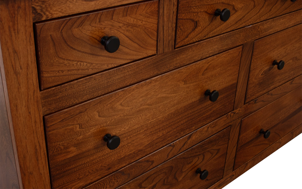 The Elm Dresser is meticulously crafted by American artisans, exclusively for Redekers. Made from solid hardwood, it offers customizable options such as wood species, hardware, and stain color. Upgrade your bedroom with this durable and stylish piece.
