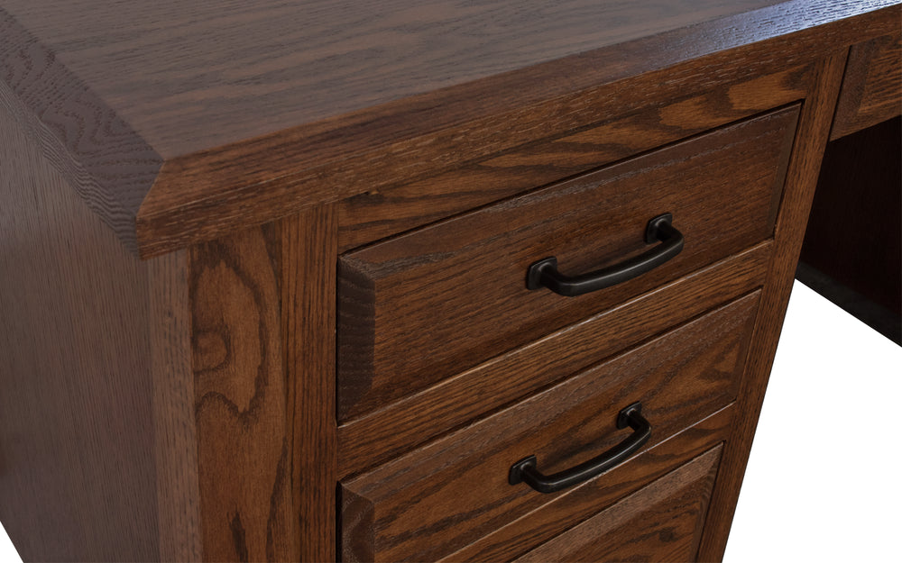 Upgrade your workspace with our elegant Oak Desk. Handcrafted by Amish artisans, this executive desk is customizable with a variety of wood species, stain colors, and hardware options to suit your personal style. Perfect for both functional and aesthetic purposes.