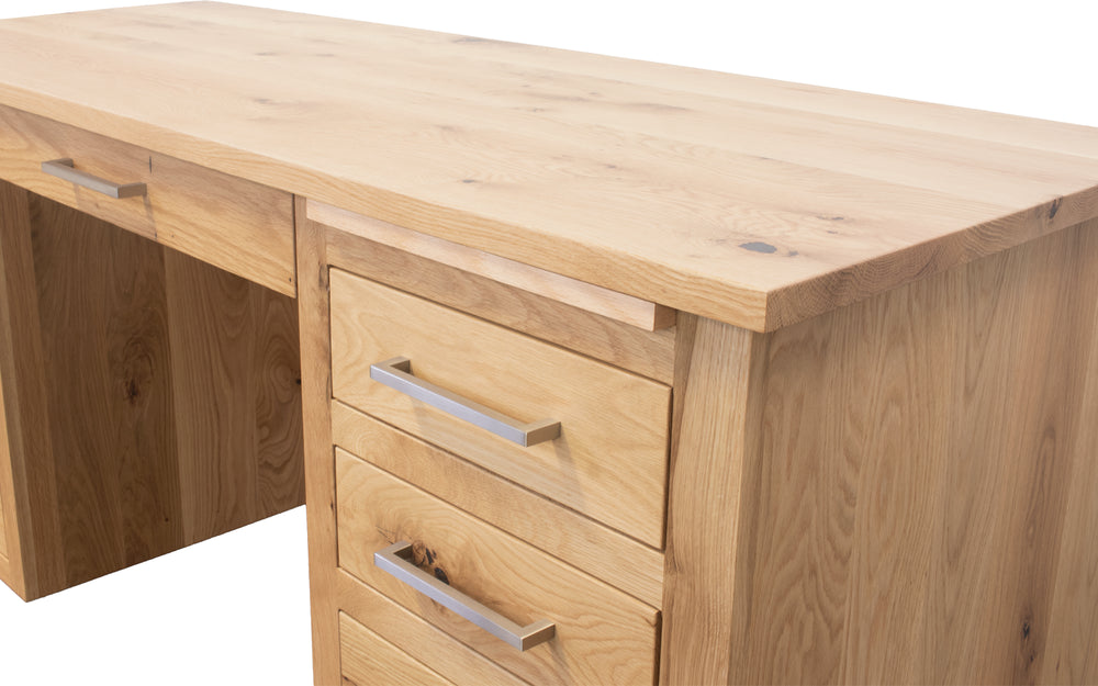Meticulously handcrafted by Amish artisans, this Rustic White Oak Desk exemplifies superior solid wood construction and traditional woodworking techniques. Featuring ample storage for optimal organization, this desk can be customized to your specifications with various wood species, stain colors, and hardware options. Each piece represents generations of woodworking expertise, ensuring exceptional durability and timeless functionality.