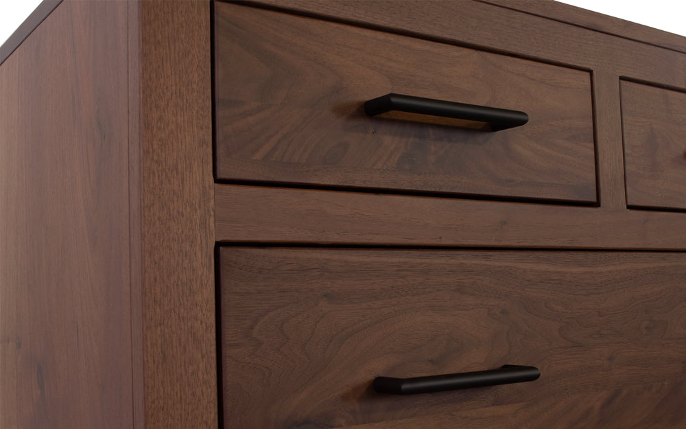 Crafted with solid wood and Amish construction, this Rustic Walnut Chest offers durability and timeless style. Featuring simple black hardware and a 0 sheen stain, it brings a natural, understated elegance to any room. Customize the wood species, stain color, and hardware to perfectly match your space and personal taste. This Chest combines quality craftsmanship with personalized options to support your home’s unique character.
