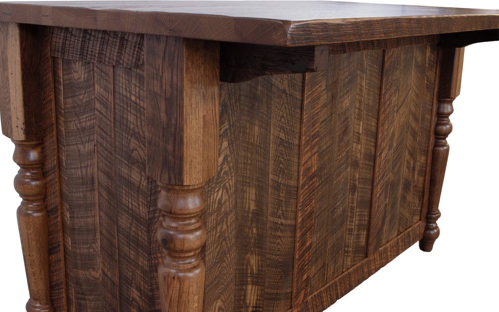 Add charm and character to your kitchen with our Reclaimed Barnwood Island. The spindle legs exude a rustic charm, while the spacious 6 drawers and 2 cabinets provide ample storage. The overhang counter also offers additional seating for your family and friends.