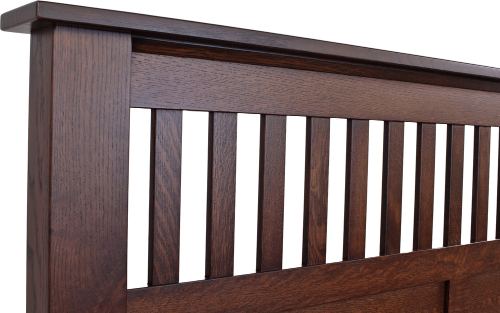 Indulge in timeless craftsmanship with our Rustic Quartersawn White Oak King Bed. Handcrafted by skilled Amish artisans, this traditional style bed can be customized with a variety of wood species and stain colors. Enjoy the beauty and durability of solid wood furniture.
