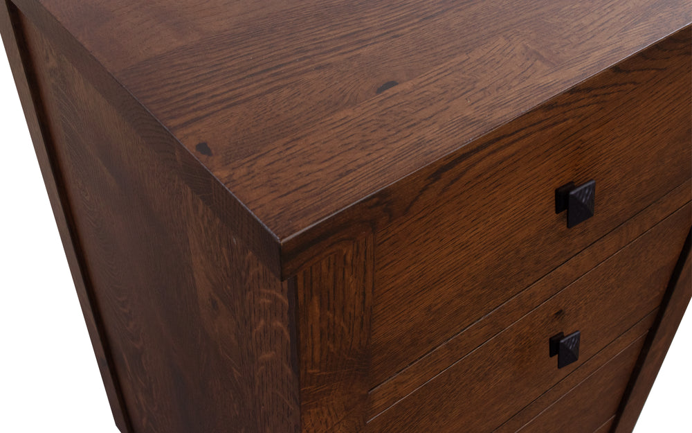 Indulge in the expert craftsmanship of our Amish-made Rustic White Oak Nightstand. Made with solid wood construction, its rustic charm and customizable options for wood species, stain color, and hardware will add an elegant touch to any bedroom. Enhance your space with this durable and stylish nightstand.
