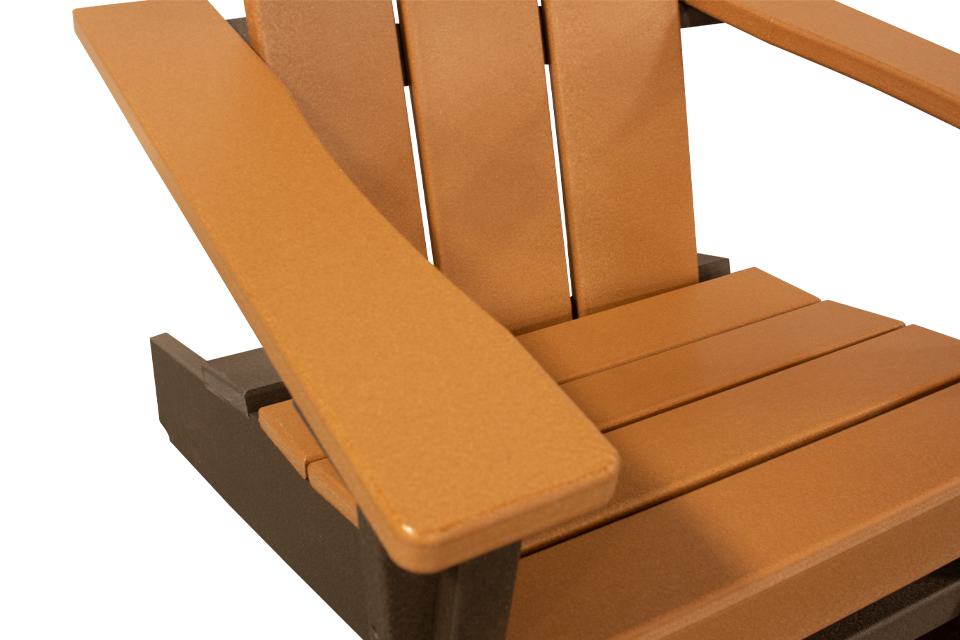 Meticulously crafted with attention to detail, this chair offers a modern twist on classic Adirondack design. Constructed with the heavy-duty durability of polywood (high-density polyethylene) and ergonomically contoured seating, it offers a perfect retreat for maintenance-free outdoor relaxation. Pictured in Cedar & CoffeeContoured Seat for Comfort Resistant to UV and Harsh Weather Climates – leave it out year-round! Corrosion Free, Pest FreeEasy to Clean, Mild Soap and Rinse with WaterAmish Hand-Crafted in the USAAvailable in other colors for the same price