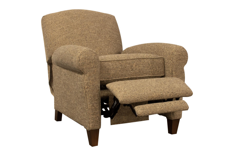 This leather recliner is made by Smith Brothers in Berne, Indiana, our top-end manufacturer. Smith Brothers creates high quality furniture from solid maple frames, high quality Qualex foam cushions and drop in coil units below each cushion that allow for added comfort. Can be ordered in a different fabric