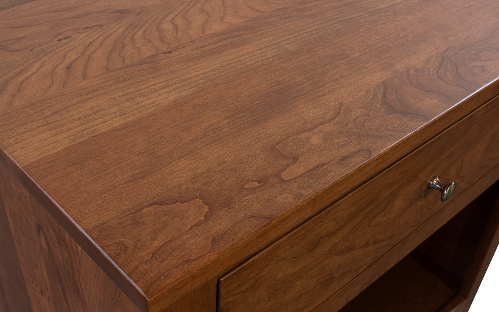 Add a touch of charm to your bedroom with our Sap Cherry Nightstand. The extra wide design offers ample storage space with 1 drawer and a large shelf, great for holding a basket or decor. Choose from a variety of wood species, stain colors, and hardware options to customize your nightstand to fit your unique style.