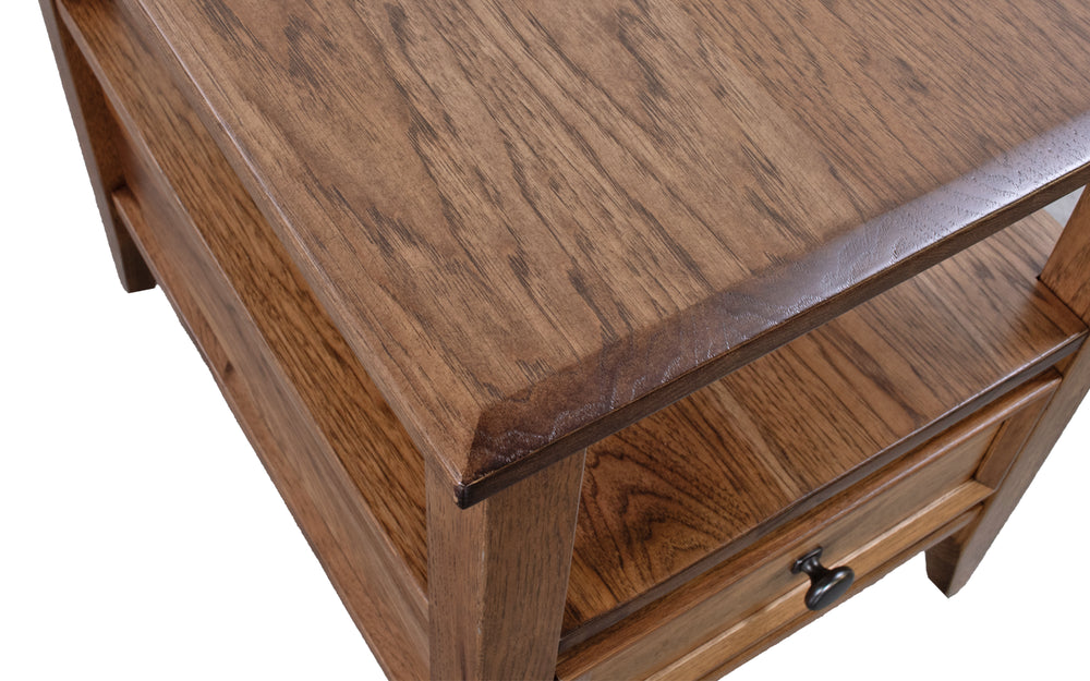 Upgrade your living space with our Amish-made Hickory End Table. With its customizable wood species, stain color, and hardware options, you can create a perfect fit for your home. Keep your essentials organized with the added storage.