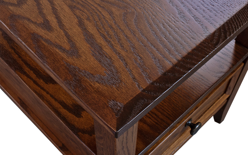 This amish made Oak End Table features customizable wood species, stain color, and hardware. Add a touch of personalization to your living space with this handcrafted piece.