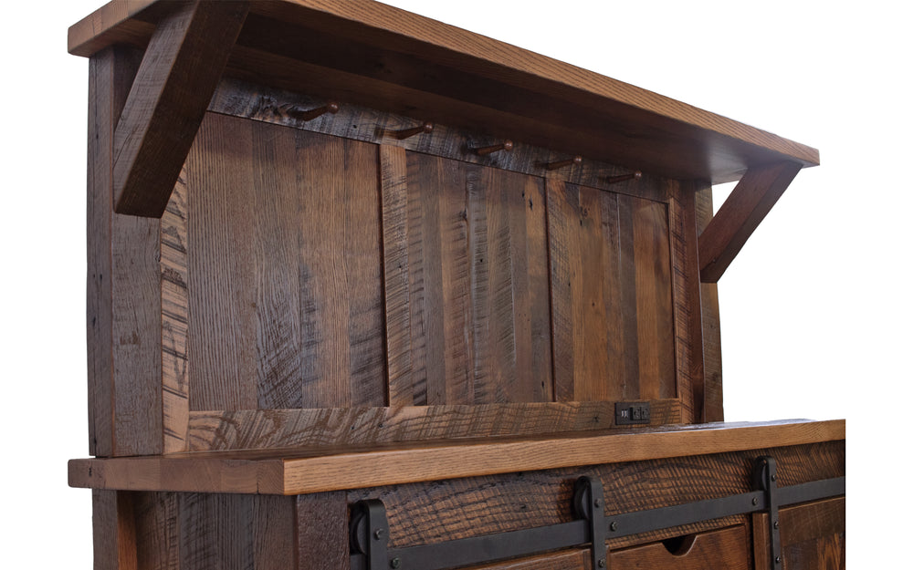 Crafted by Amish artisans from solid reclaimed barnwood, this coffee bar combines rustic charm with modern convenience. Thoughtfully designed with built-in counter outlets and USB ports, it keeps your devices powered while you enjoy your coffee. Durable and timeless, it’s a perfect piece to add to your kitchen or gathering space.
