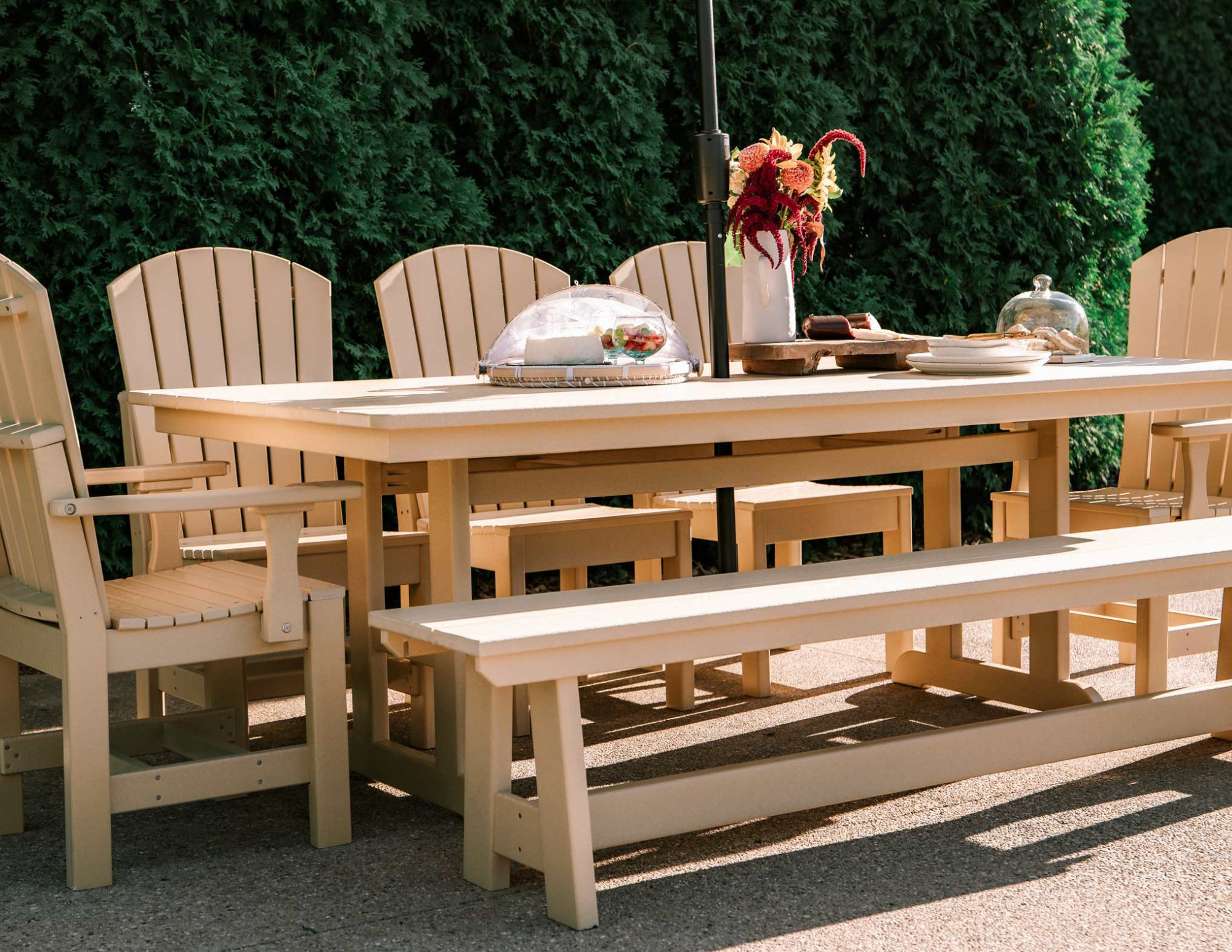 Our outdoor selection features American-made Polywood pieces created from durable, high-density, recycled materials that are completely maintenance-free – they will not rust, rot, or need painting. Whether it's for dining or lounging, we carry quality outdoor brands available in a wide variety of fade-resistant metal, fabric, and color options so you can create the perfect outdoor setting of your own.